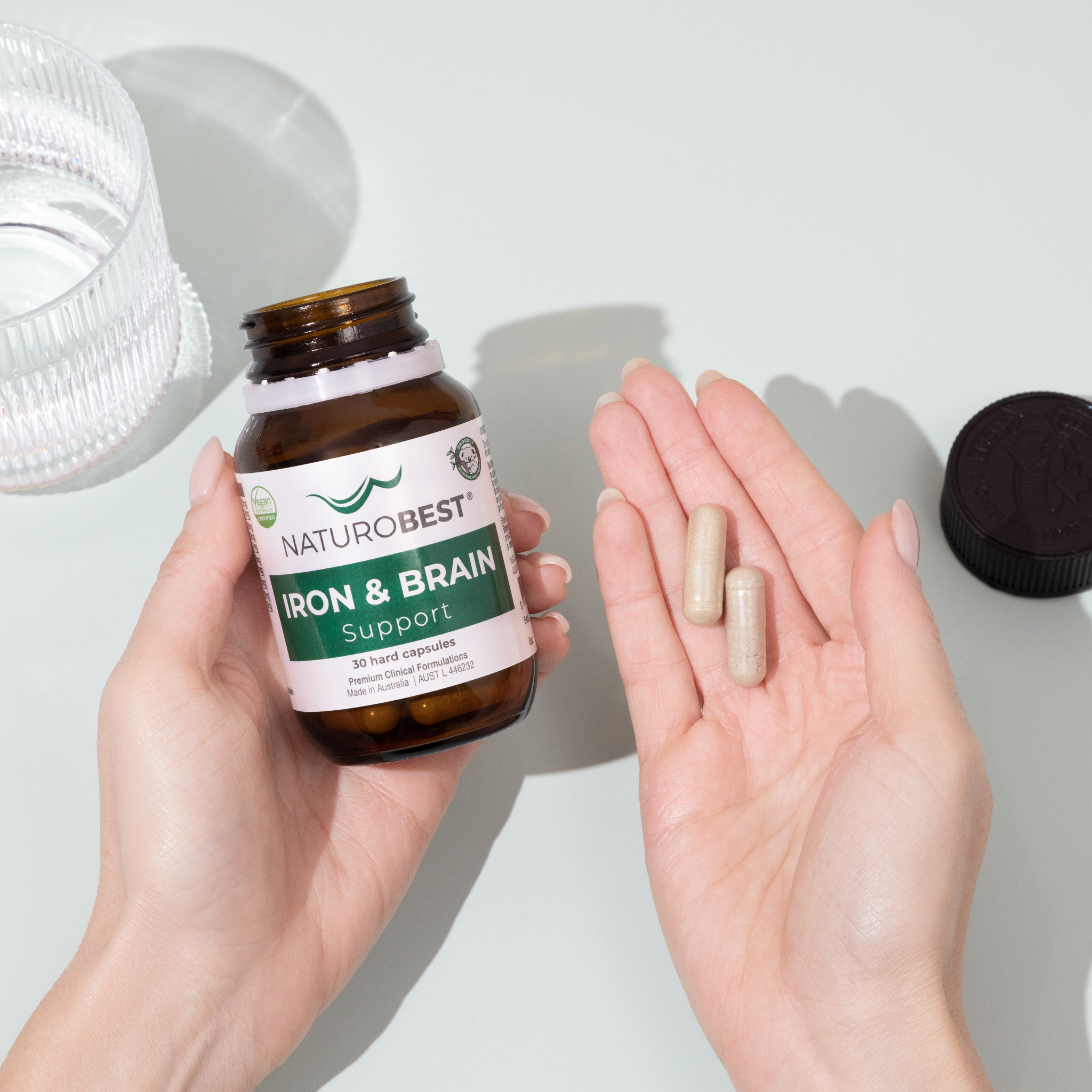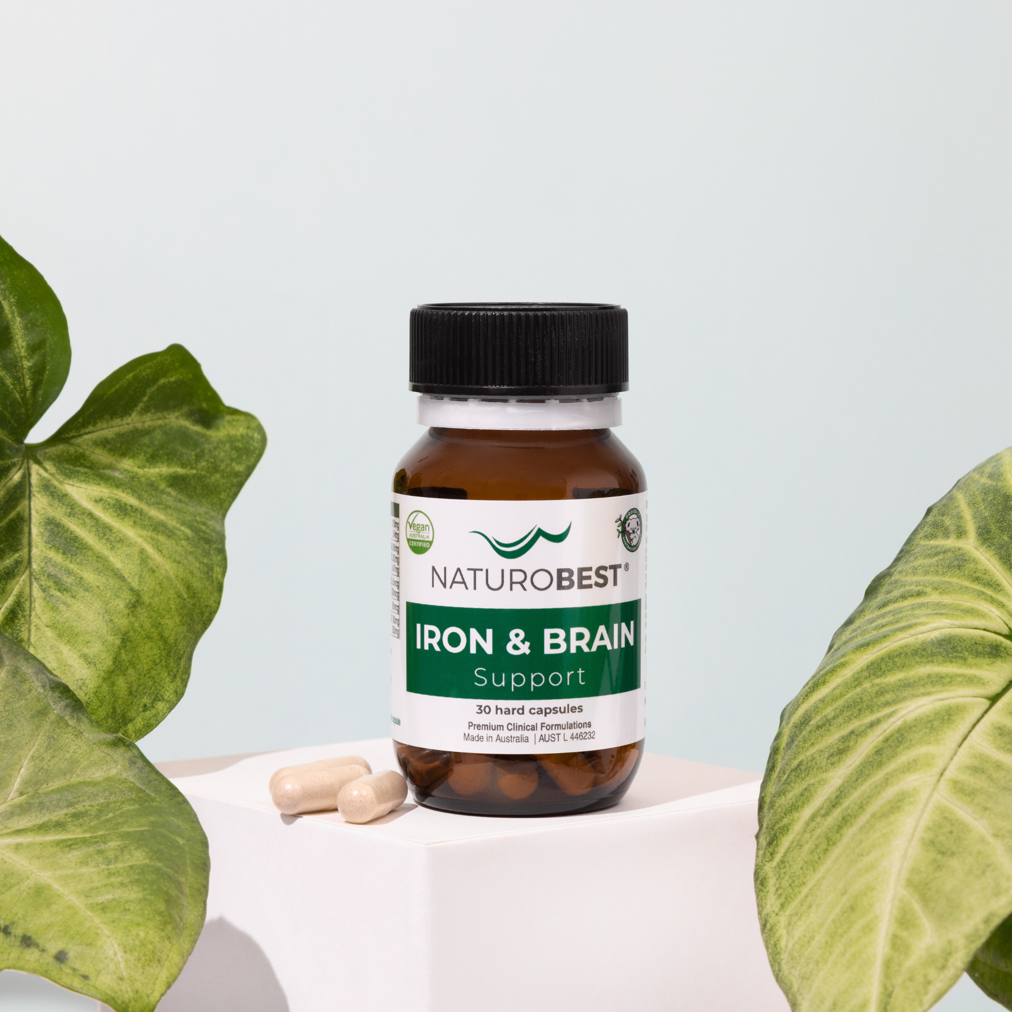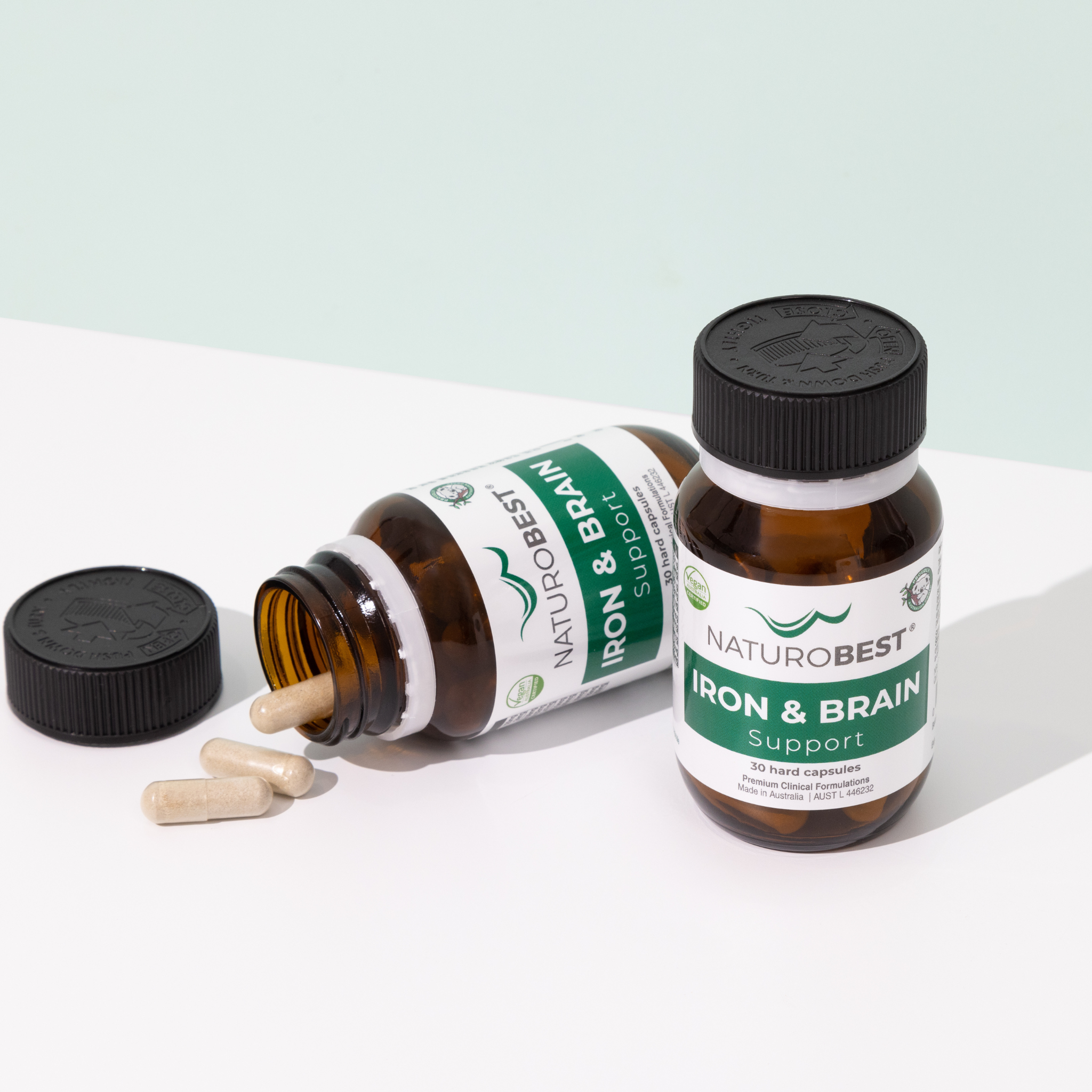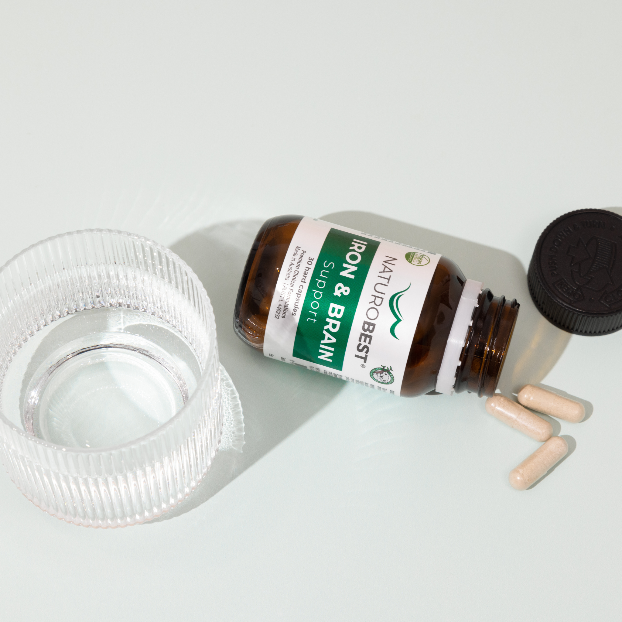 Iron & Brain Support is a vegan-friendly iron supplement in the form of iron bisglycinate which is more likely to be well absorbed and well tolerated than other forms of iron.