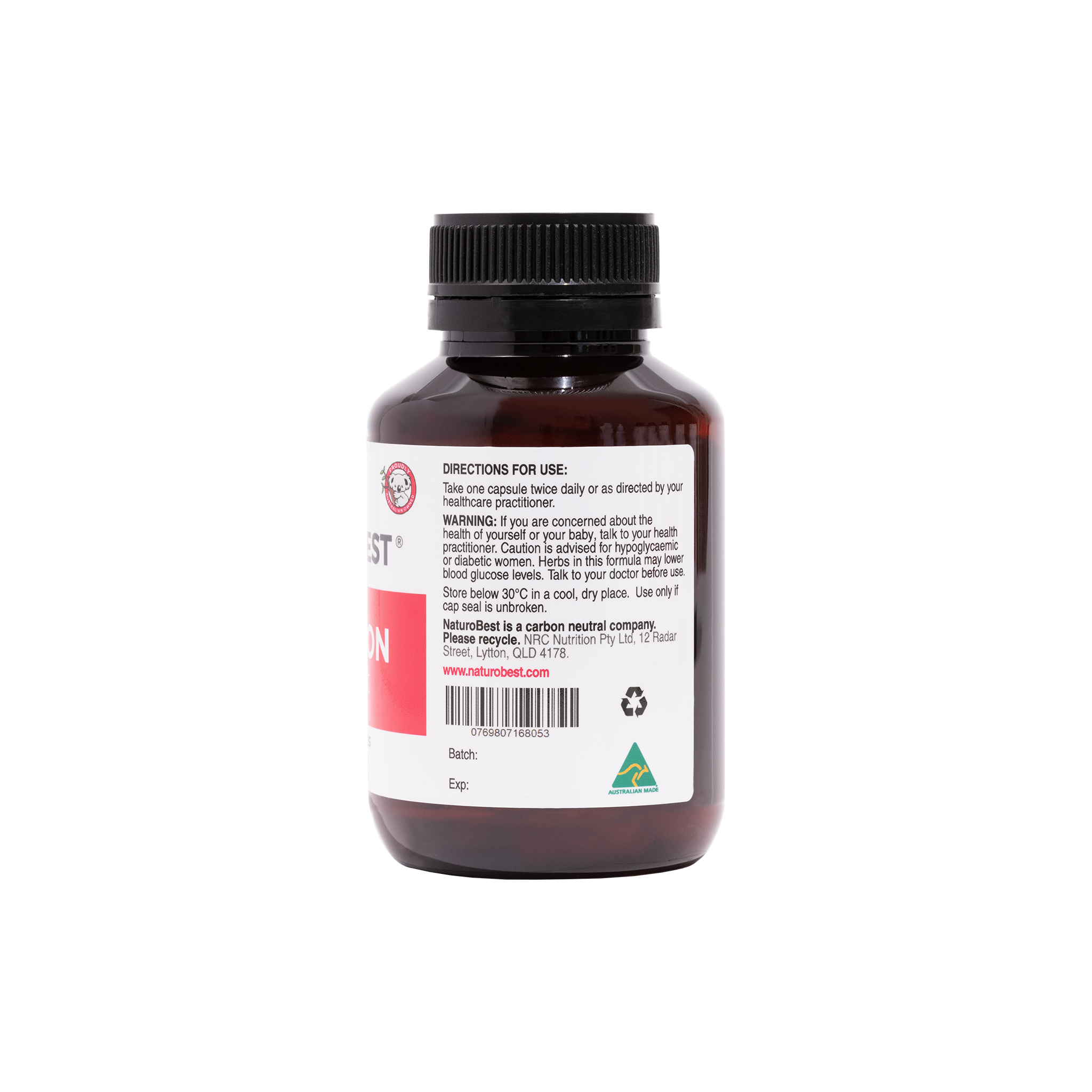 If you are concerned about the health of yourself or your baby, talk to your health practitioner. Caution is advised for hypoglycaemic or diabetic women. Herbs in this formula may lower blood glucose levels. Consult your health professional before use. Store below 30 degrees celcius in a cool, dry place. Use only if cap seal is unbroken.